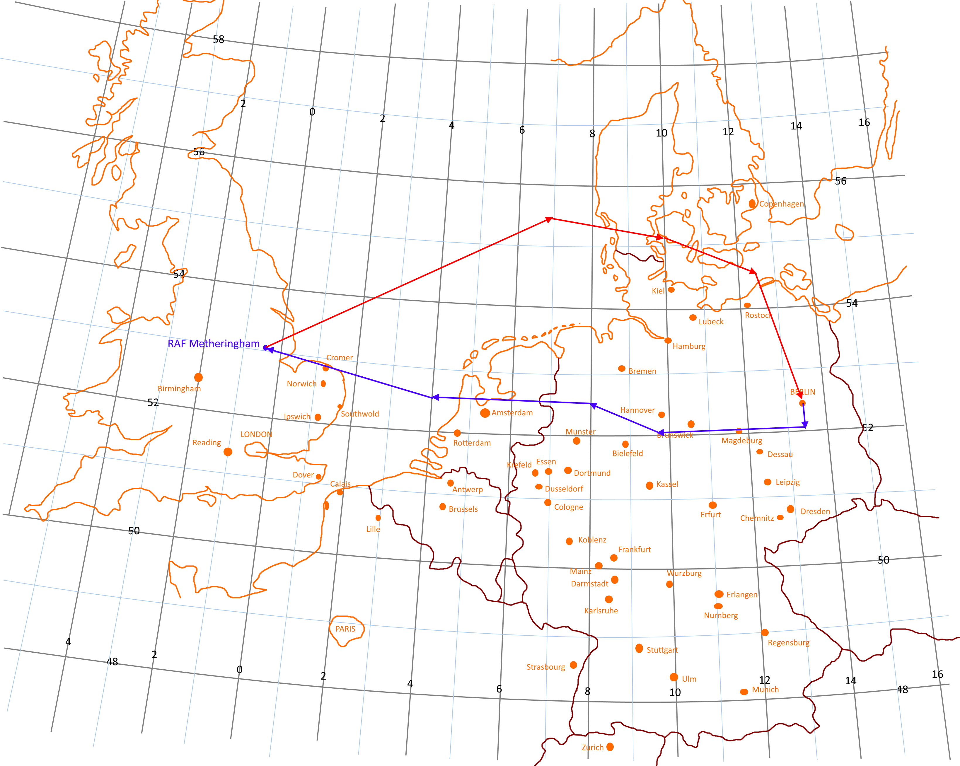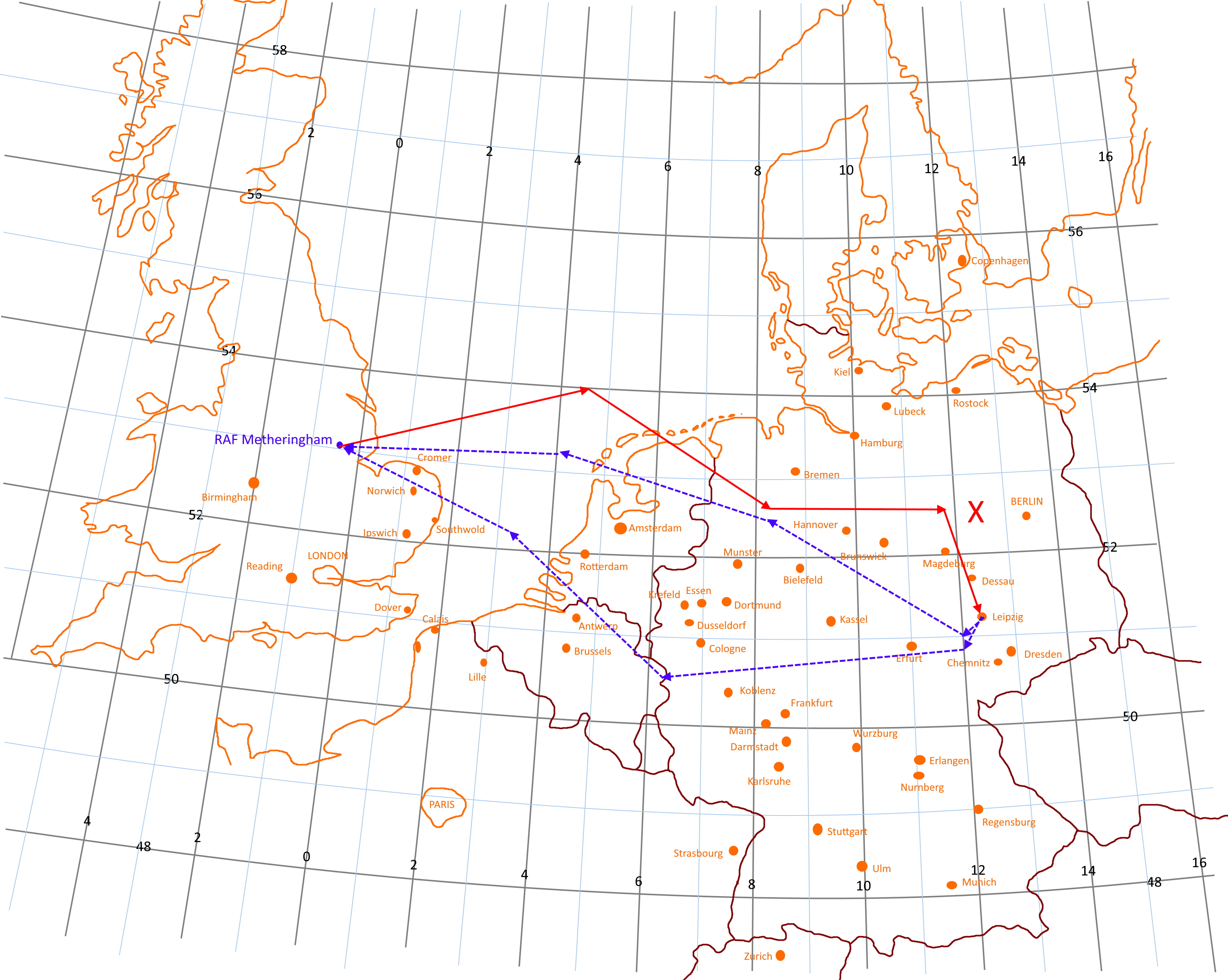 After a couple of weeks break, on the night of the 15th/16th February 1944, John and crew undertook their 9th mission to Germany. Once again the target was Berlin.