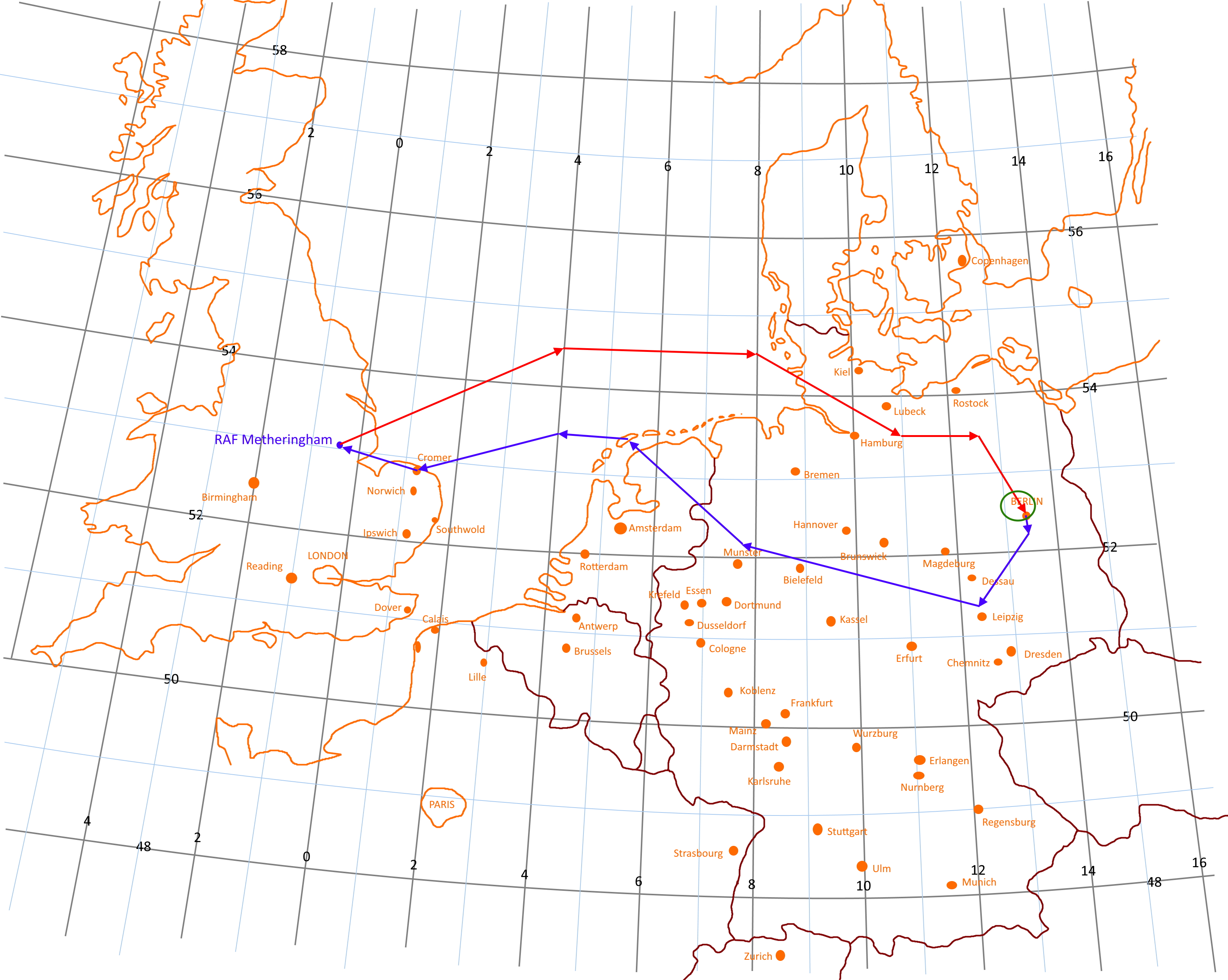 Despite the undoubted trauma of their own last flight, the remainder of the crew were back on operations just three days later. The crew had a new Flight Engineer and Wireless Operator, but the target was the same. Back to Berlin!